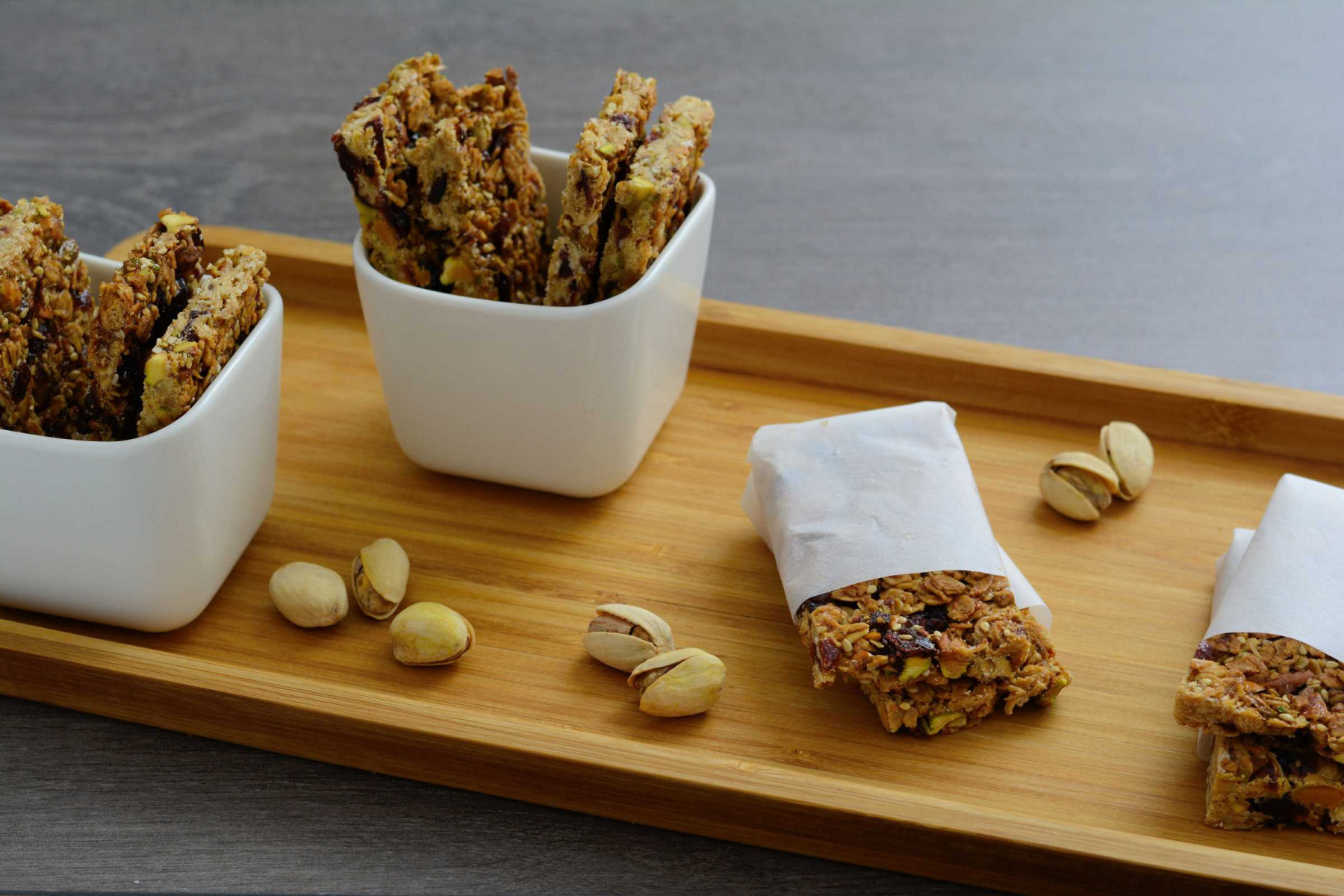 Mittlerweile gibt es ein sehr großes Angebot an Riegel in den verschiedensten Geschmacksrichtungen, doch trotzdem hat man mal Lust auf was anderes. Ziel unseres Riegels mit Cranberries und Pistazien ist es, ein guter Energielieferant zu sein, wozu Fette, Zucker, Proteine und Kohlenhydrate gehören. Die Nährwerte des Riegels im Vergleich mit einem gekauften Energieriegel (in Klammern):